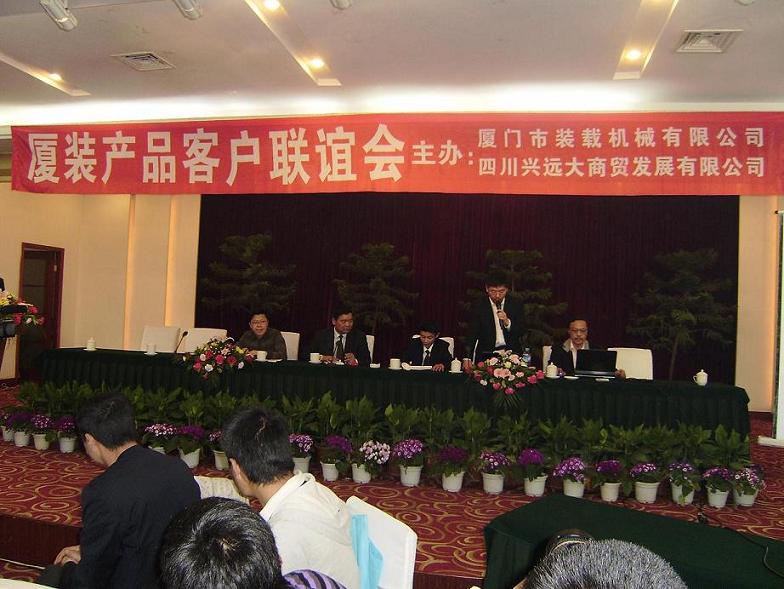 2009年3月21日上午,廈門市裝載機(jī)有限公司及四川興遠(yuǎn)大商貿(mào)發(fā)展有限公司共同舉辦的“廈裝機(jī)械客戶聯(lián)誼會”在什邡市長江賓館舉行。廈門市裝載機(jī)有限公司副總經(jīng)理王曉忠、技術(shù)中心副主任王理和什邡市工商聯(lián)主席鄧家宜出席會議。