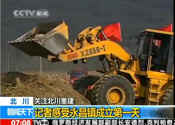 央視播報(bào)---廈裝XZ656-Ⅰ裝載機(jī)援建新北川